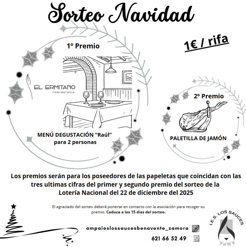 Rifas disponibles a través de los socios o en cafetería del instituto.
